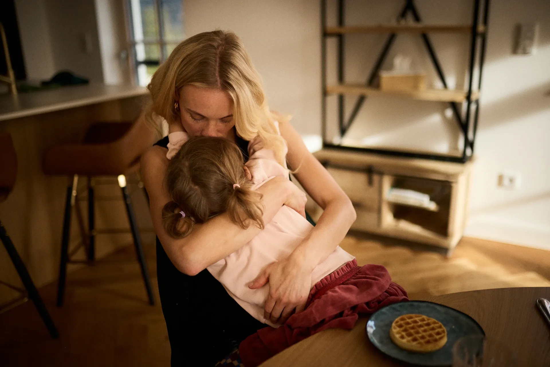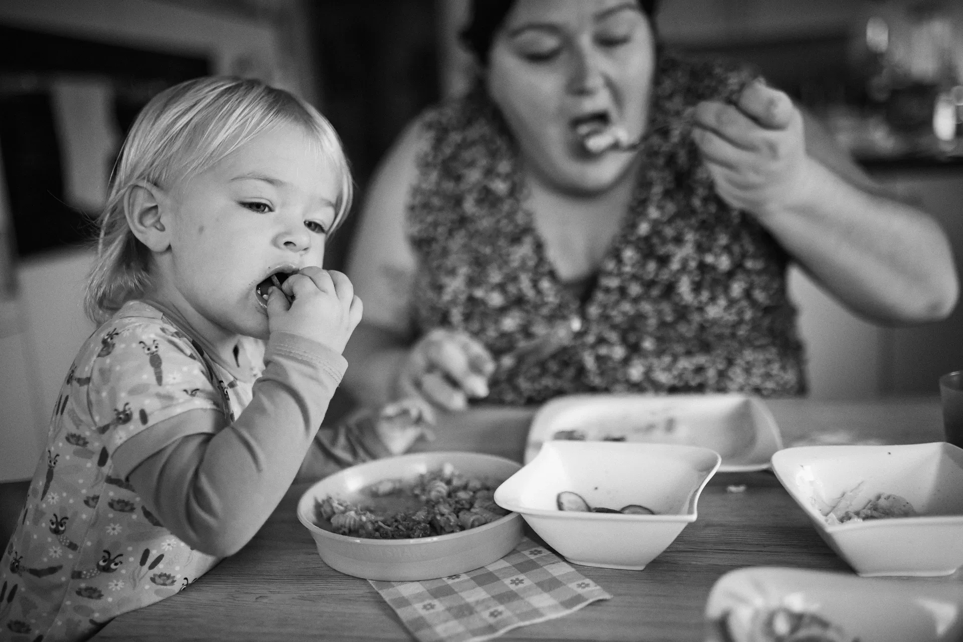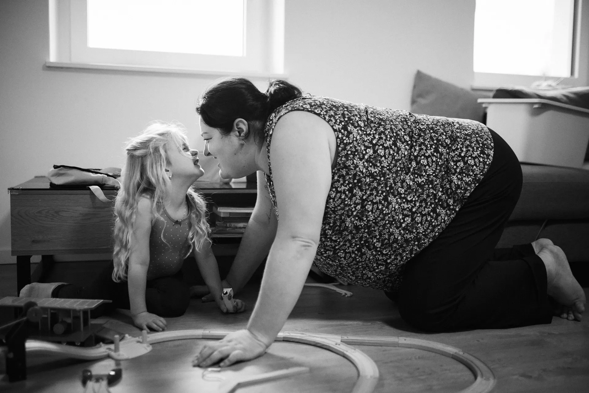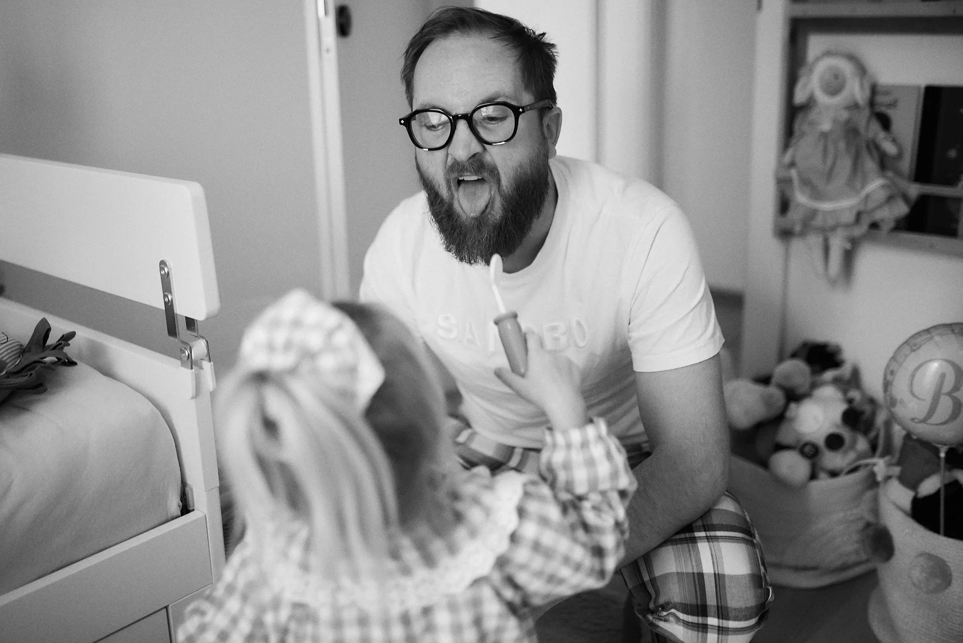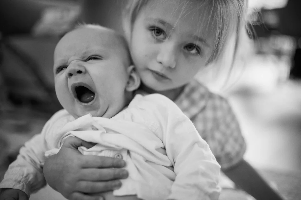 Ich liebe die dokumentarische Familienfotografie, weil sie das Echte zeigt: kleine Hände, die sich fest an Mama klammern. Tiefes Luftholen bevor der Kampf ums Zähneputzen